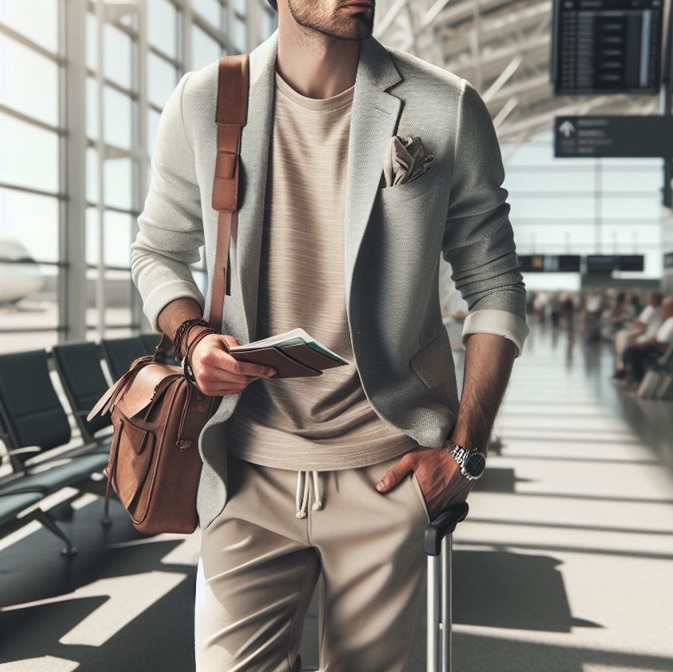 - Pantalones: Combina tu blazer con jeans o chinos ajustados. Si buscas más comodidad, unos joggers deportivos o pantalones deportivos a medida también pueden ser una buena opción, especialmente si vas a volar o caminar mucho.