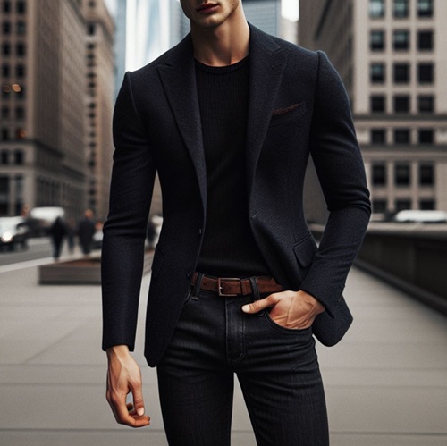 - Accesorios: Añade un cinturón de cuero elegante, un reloj minimalista y quizás un pañuelo de bolsillo de seda o una corbata para darle al conjunto un toque sofisticado. Si se trata de un evento nocturno tranquilo, una bufanda tejida y una chaqueta de cuero sobre tu blazer pueden crear un look de capas moderno.
